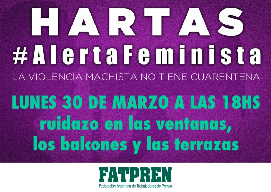 La Federación Argentina de Trabajadores de Prensa (FATPREN) se suma a la iniciativa del movimiento feminista de manifestarnos en esta cuarentena obligatoria contra los femicidios y la violencia machista. Convoca a realizar un ruidazo desde las ventanas, balcones y terrazas a las 18 horas y colgar banderas y pañuelos verdes. Durante los diez días de […]