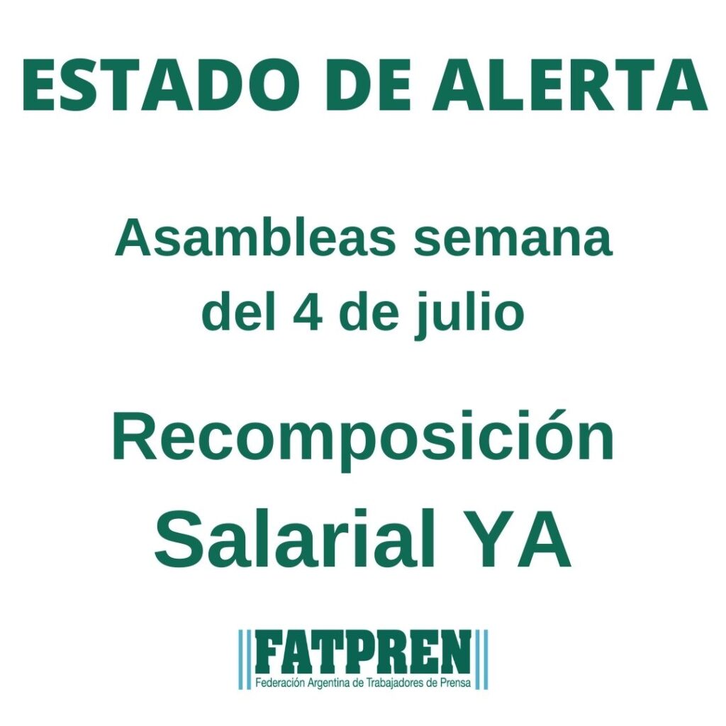 Exigimos una recomposición salarial YA Por un salario mínimo en prensa de 120 mil pesos en todo el país. Con la presencia de 13 sindicatos, el plenario de Secretarios/as Generales de la Federación Argentina de Trabajadores de Prensa (FATPREN), reunido el jueves 30 de junio, resolvió iniciar un plan de acción urgente frente al estado […]