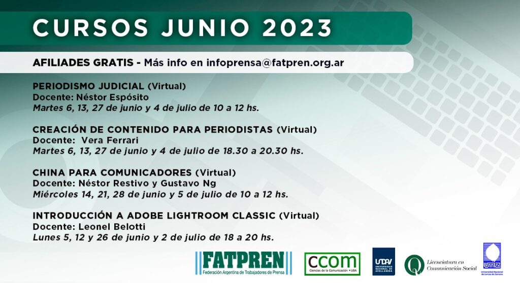 Gratis para afiliades a sindicatos adheridos y a aportistas a FATPREN vía convencional. Más información en infoprensa@fatpren.org.ar Descripción de los cursos: Introducción a Adobe Lightroom Classic Docente: Leonel Belotti ¿Cuándo?: Los lunes 5, 12, y 26 de junio y 2 de julio de 18 a 20 hs. Planificación: Primer encuentro Introducción Segundo encuentro Flujo de […]