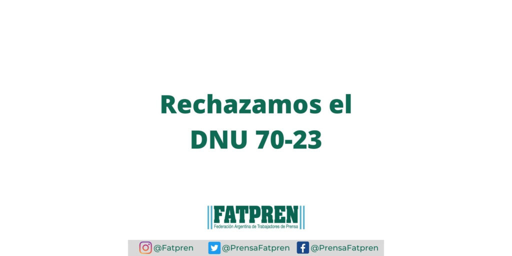 La Federación Argentina de Trabajadores de Prensa (FATPREN) rechaza enfáticamente el DNU 70/23 publicado el día de la fecha en el Boletín Oficial. En una medida sin precedentes en democracia, que modifica o deroga por decreto cientos de leyes, evitando el normal trámite legislativo, el poder ejecutivo pretende imponer una profunda reforma normativa en contra […]