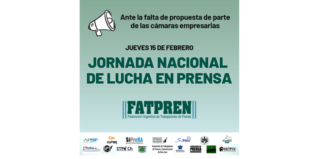 Este jueves 15 de febrero, les trabajadores de prensa de todo el país llevaremos adelante una Jornada nacional de lucha en reclamo por salarios dignos frente a las propuestas nulas o irrisorias de las patronales. Empresarios de medios:¡basta de demoras! ¡Recomposición salarial YA!