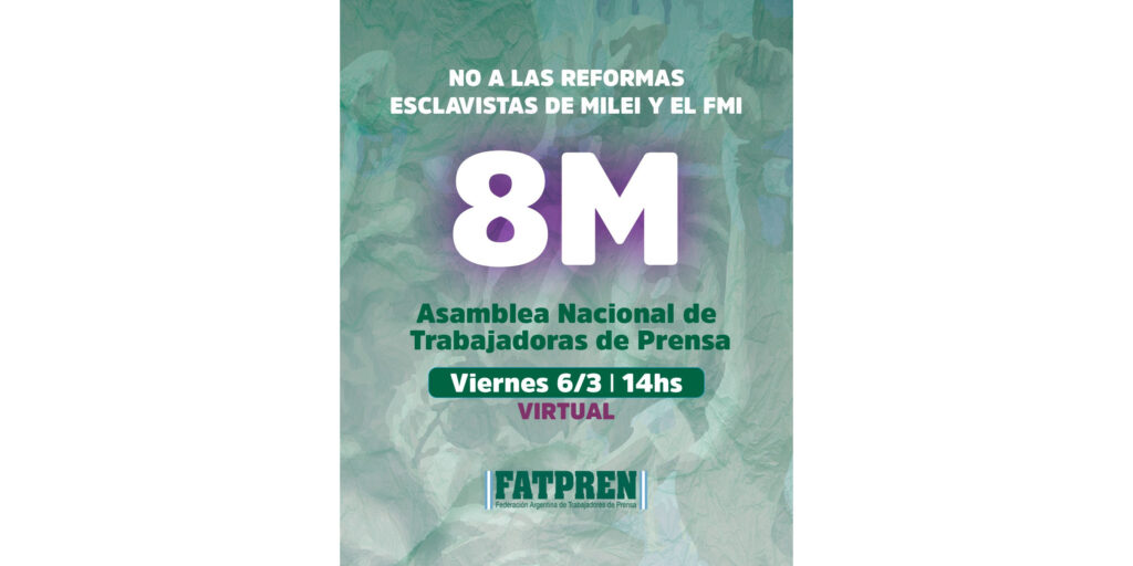 En el marco del 8M, las mujeres y diversidades trabajadoras de prensa volvemos a conectarnos para compartir el panorama federal de nuestra actividad, para articular nuestros reclamos y defender nuestros derechos, este viernes 6 de marzo a partir las 14.00. Para participar, solicitale el link a tu sindicato. ¡Sumate!