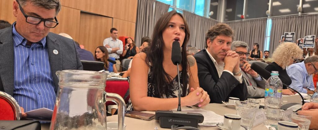 Previamente, el martes 18, nuestra Secretaria General, Carla Gaudensi, participó del plenario de Comisiones en la Cámara de Diputados que trató la norma, donde se expresó contra todo el proyecto en general y contra la eliminación del Estatuto del Periodista en particular, señalando el ataque hacia la libertad de expresión y el derecho a la información que implica esa resolución.