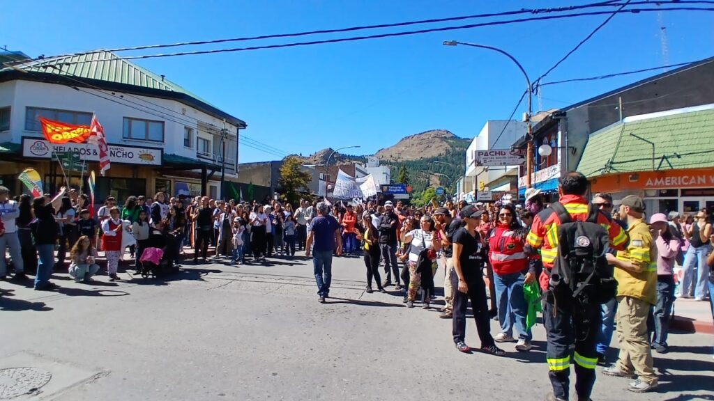 En Esquel, dirigentes del Sindicato de Prensa del Oeste del Chubut marcharon por la ciudad junto a otras organizaciones sindicales y sociales.