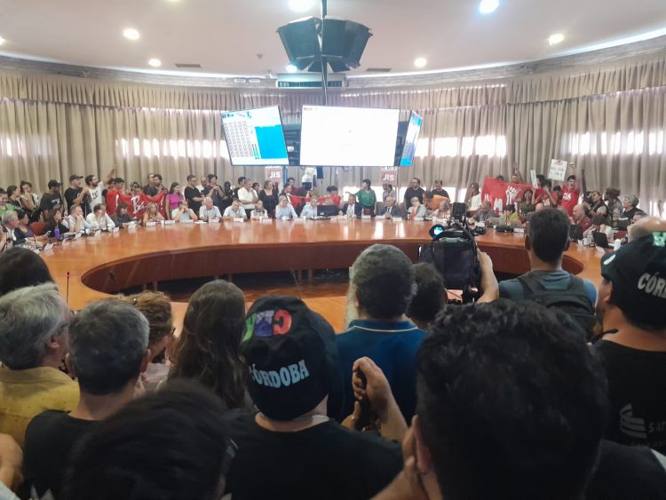 Al inicio de la sesión, un trabajador del Multimedio, el periodista Dante Leguizamón, leyó el documento consensuado en sucesivas asambleas para denunciar ante el Honorable Consejo Superior de la UNC el “ajuste fenomenal al que el Gobierno Nacional pretende someter al Sistema Universitario Público Nacional”.