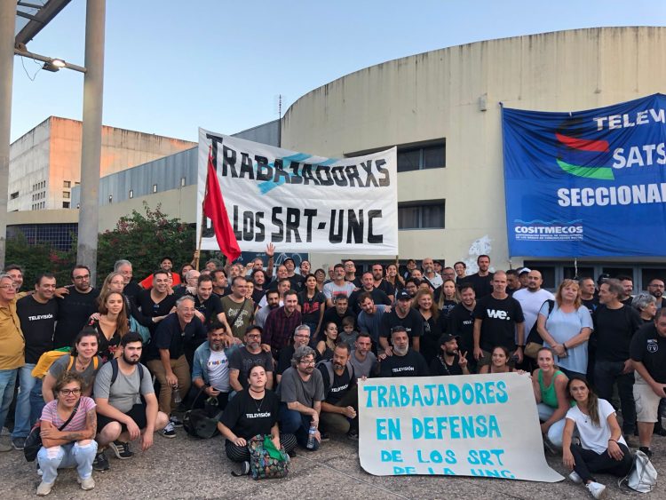 El Círculo Sindical de la Prensa y la Comunicación de Córdoba (Cispren) junto al Sindicato Argentino de Televisión, Servicios Audiovisuales, Interactivos y de Datos (Satsaid), la Asociación Argentina de Trabajadores de la Comunicación (AATRAC), y el Sindicato Argentino de Locutores, que conforman la Intersindical de los SRT en defensa del medio público, movilizaron y acompañaron a trabajadoras y trabajadores en la jornada, junto a estudiantes y organizaciones autoconvocadas en donde se manifestó la preocupación por el futuro del medio universitario.