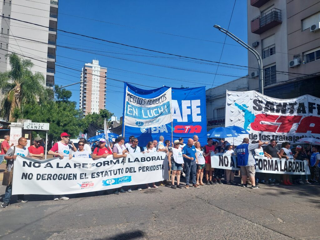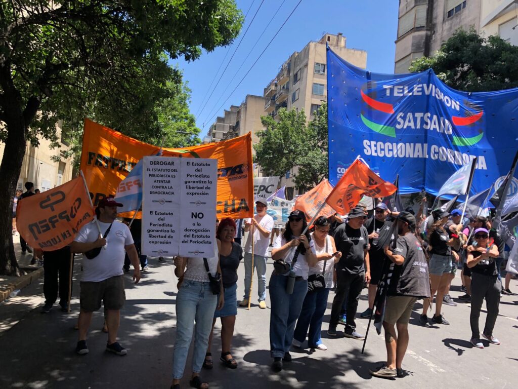 En Córdoba, los trabajadores y trabajadoras del Círculo Sindical de la Prensa y la Comunicación de Córdoba marcharon hacia la concentración frente a la Legislatura Provincial. En Río Cuarto, el Cispren llevó el repudio contra la derogación del Estatuto al Concejo Deliberante.