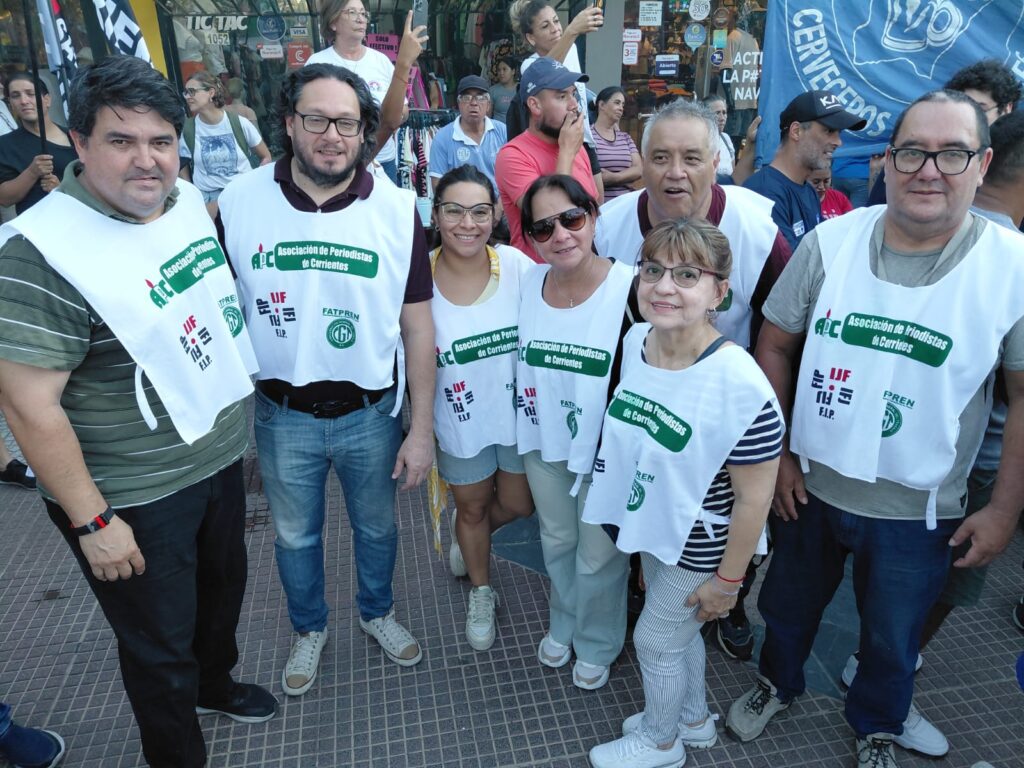 En tanto, los integrantes de la Asociación de Periodistas de Corrientes (APC) se sumaron a la nutrida concentración que tuvo lugar en la Plaza Vera.