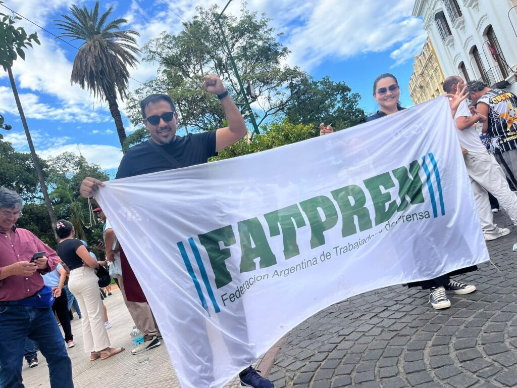 Los compañeros y compañeras del Sindicato de Prensa de Salta (Siprensal) fueron parte de la concentración en la Plaza 9 de Julio de la capital salteña.