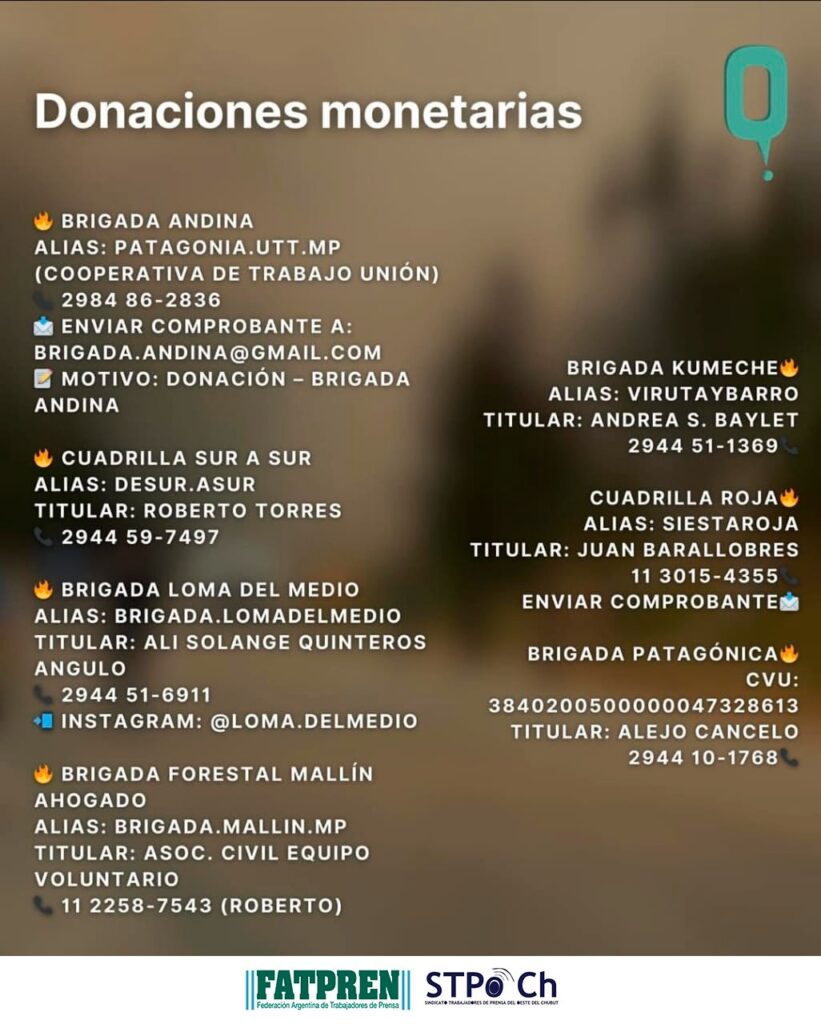 Desde la Federación Argentina de Trabajadores de Prensa (FATPREN) junto a el Sindicato de Prensa del Oeste de Chubut compartimos cómo colaborar desde distritos puntos del país con el pueblo afectado por las llamas.
